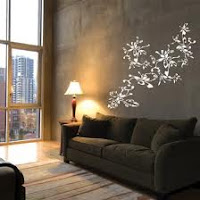 Para las paredes, los cuadros amplios podrán otorgarle un toque de plasticidad elegancia, pero tambien puedes utilizar unas plantillas como en esta foto y evitar un gasto en cuadros si es que no los tienes, y hacer de una pared la principal del salon.